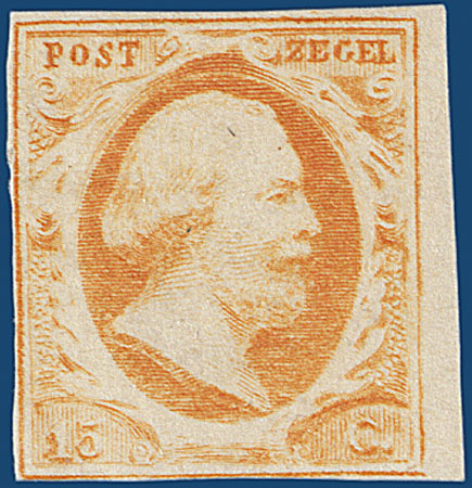 3, 15ct oranje, postfris met volledige originele gom, rechterzijde breedgerand overige zijden smal gerand, pracht ex., cert. Muis