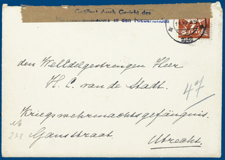 W.O.II, censuurstrook van Marinebefehlshabers in den Niederlanden, op envelop met inhoud gestuurd van Hattem naar Kriegswehrmachtsgefangenis Utrecht, 11-12-1942