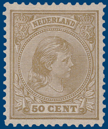 43c, 50ct (helder)zandkleur, ongebruikt, goed gecentreerd, pracht ex.