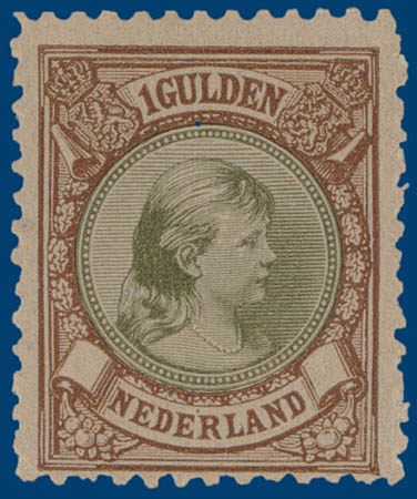 46C, 1gld bruin en olijfgroen Lt.11, postfris, pracht ex., keur Koopman en cert. Moeijes (postfrisprijs 1.375,=)